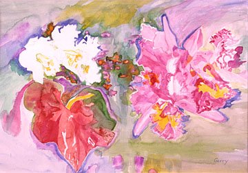 Gerry won second prize for her impressionist watercolour "Playful Ordhids" at the
